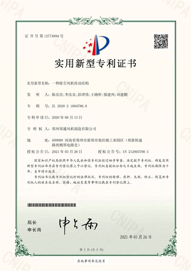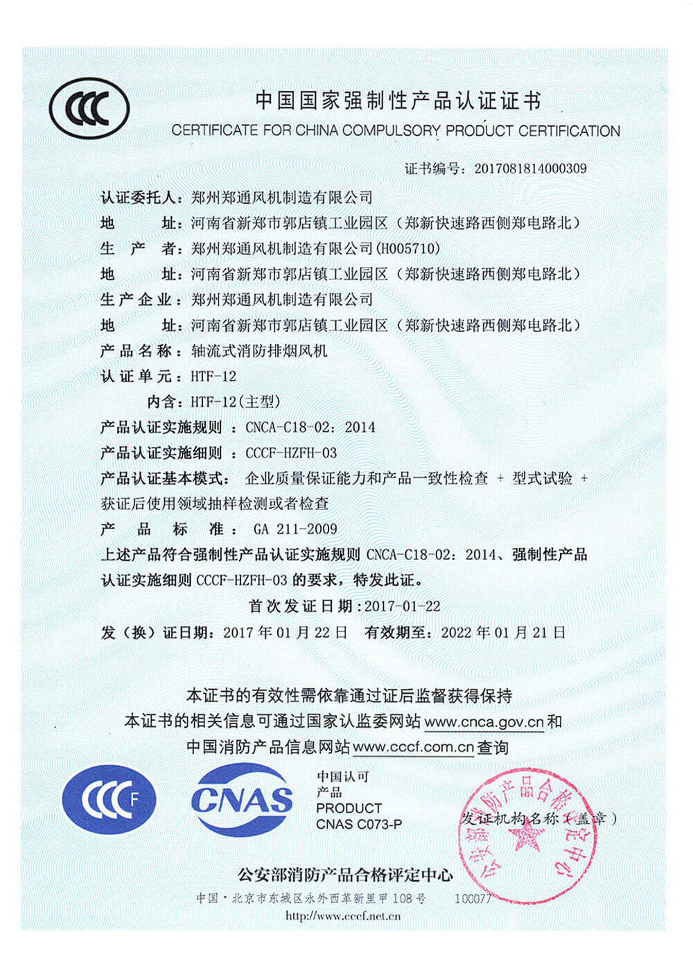 鄭通風機主要產(chǎn)品包括:高壓風機、不銹鋼風機、消防排煙風機、防腐防爆風機、廚房排油煙風機、玻璃鋼風機、鍋爐引風機、軸流風機、柜式離心風機、鍋爐引風機,產(chǎn)品通過ISO9001、ISO14001、ISO45001國際標準化組織制定的質(zhì)量管理體系認證,部分產(chǎn)品通過了3C認證和國家防爆電器產(chǎn)品質(zhì)量監(jiān)督檢驗中心認證。